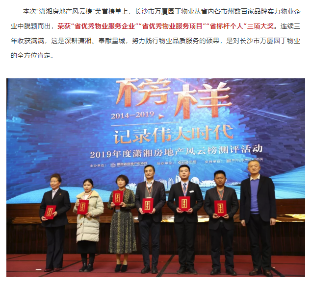 易水瀟湘,榜樣先行|萬(wàn)廈園丁物業(yè)斬獲2019年度“瀟湘房地產(chǎn)風(fēng)云榜”三項(xiàng)大獎(jiǎng)